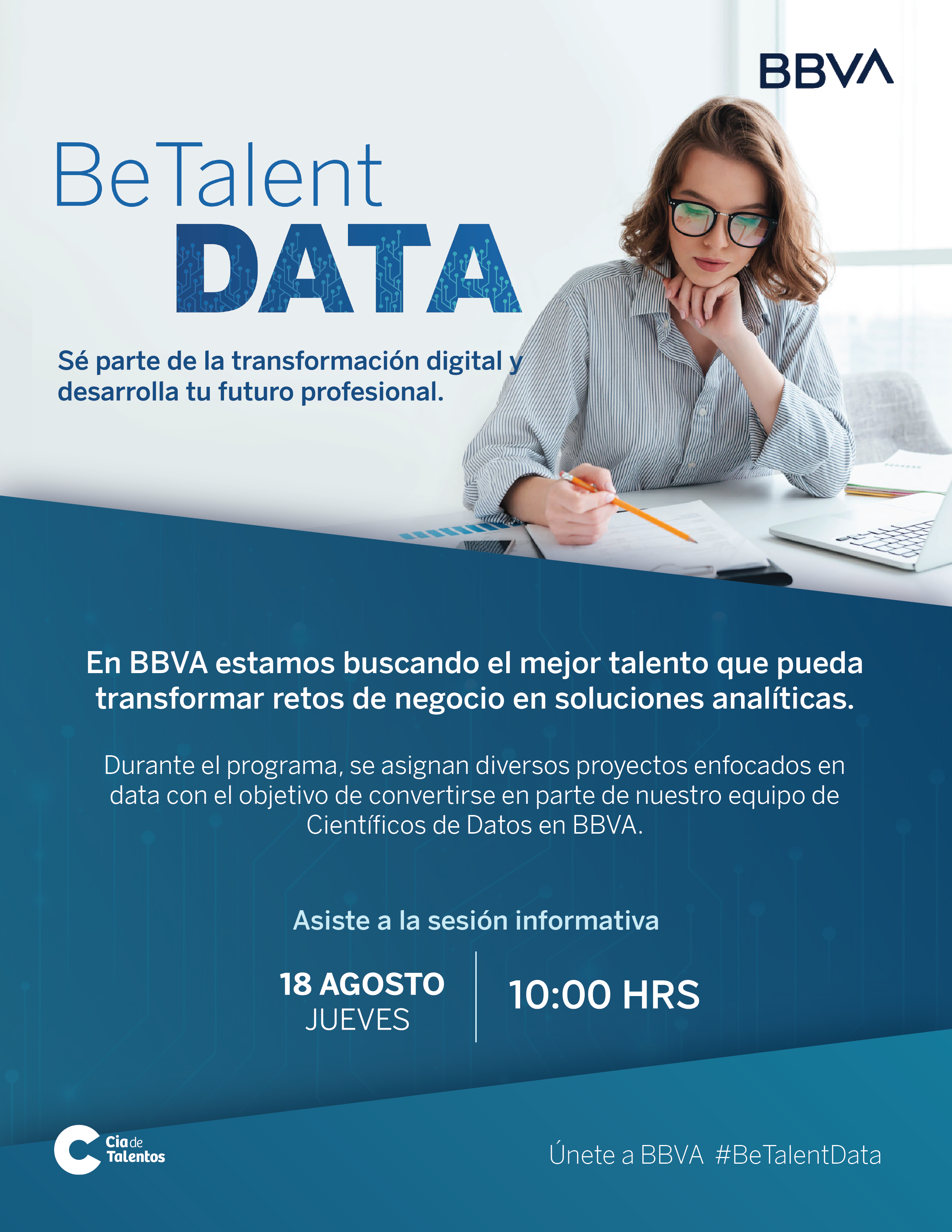 BBVA en conjunto con la Oficina de Career Services del ITAM te invita a su sesión de reclutamiento virtual, dirigida a todos los alumnos de último semestre y exalumnos (máximo 3 años de haber egresado) de las licenciaturas de Ciencia de Datos, Actuaría y Matemáticas Aplicadas y de Ingeniería en Computación.